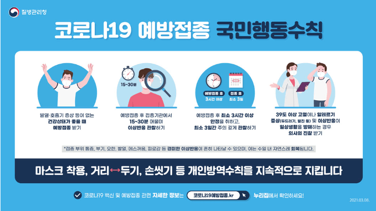 질병관리청에서 제공하는 접종 후 건강상태에 대해서도 확인하시기 바랍니다.