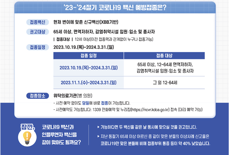 Q1. 코로나 예방접종 일정?23.10.19. ~ 24.3.31.