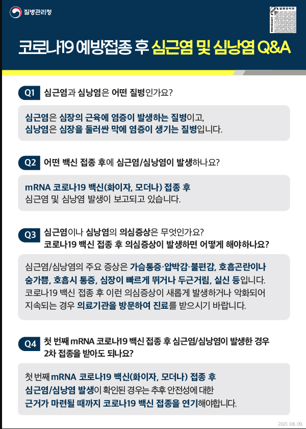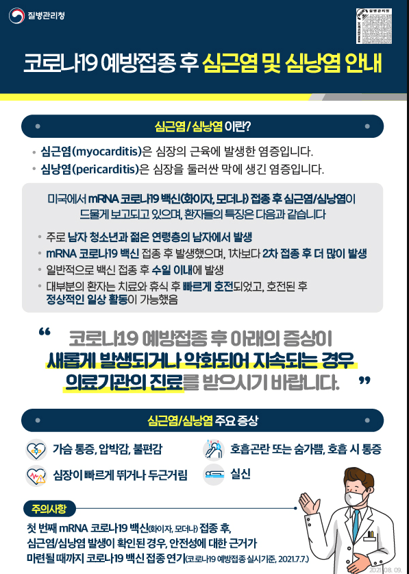 모더나, 화이자 접종 시 매우 드물게 심장에 염증이 생기는 심근염과 심낭염이 나타날 수 있습니다.