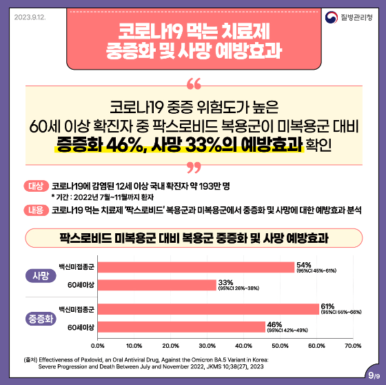 중증화 46% 예방, 사망 33% 예방 효과를 보였습니다.